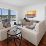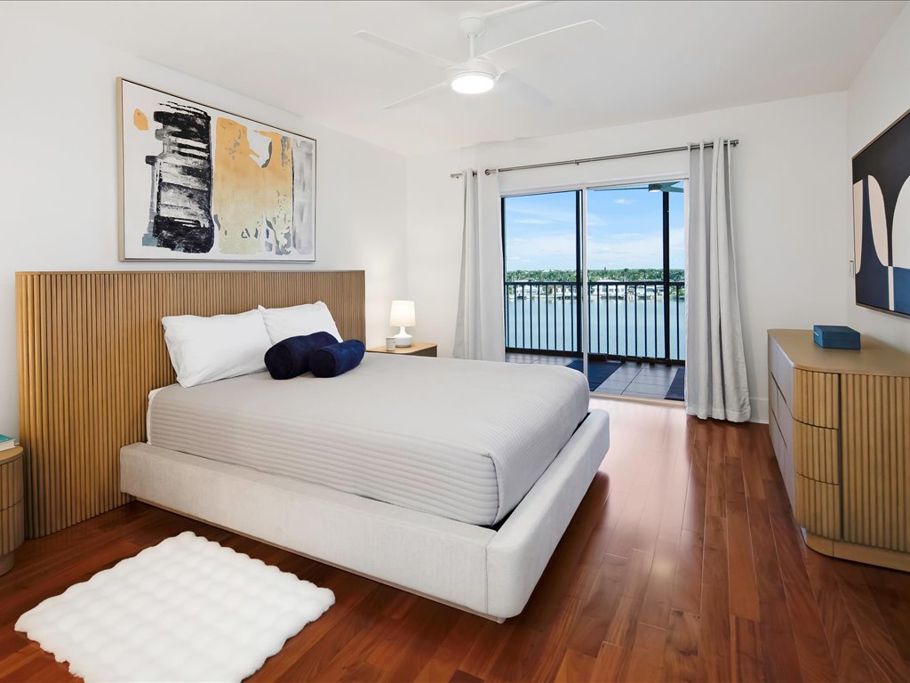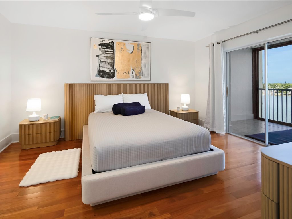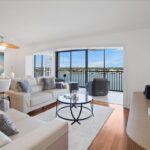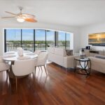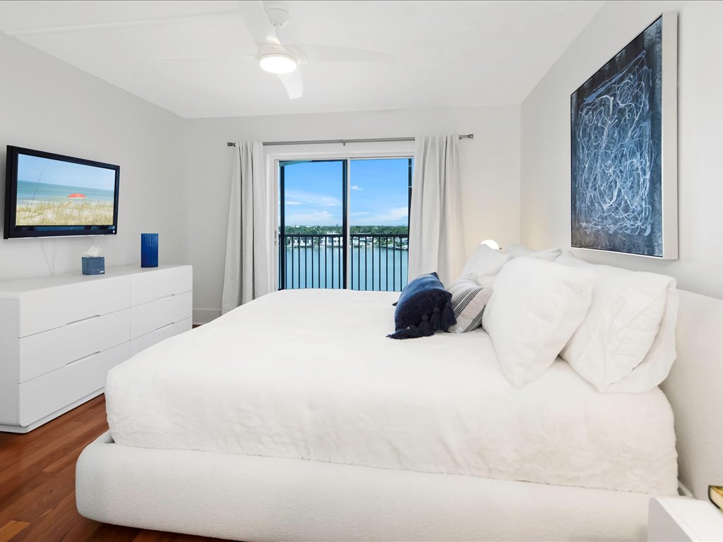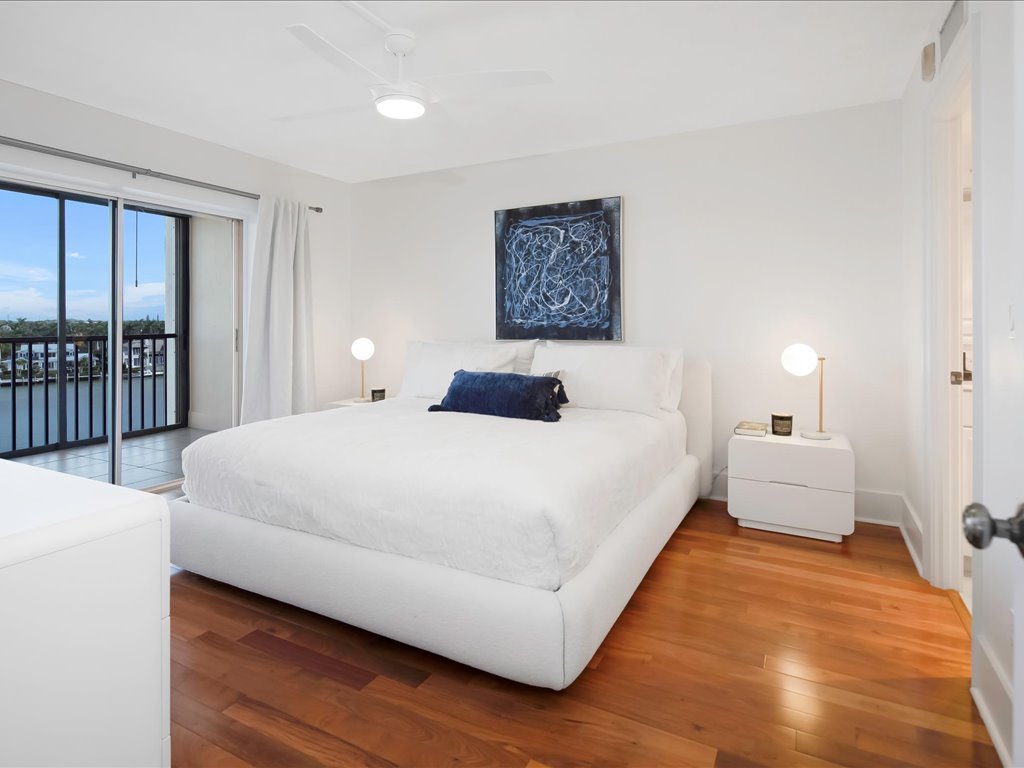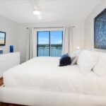 Diese charmante, bezugsfertige und komplett möblierte 2-Schlafzimmer-Wohnung mit 2 Bädern im 6. Stock bietet die perfekte Kombination aus erstklassiger Lage direkt gegenüber den weißen Sandstränden, einem weiten Blick über die Moorings Bay sowie Stil und Komfort.