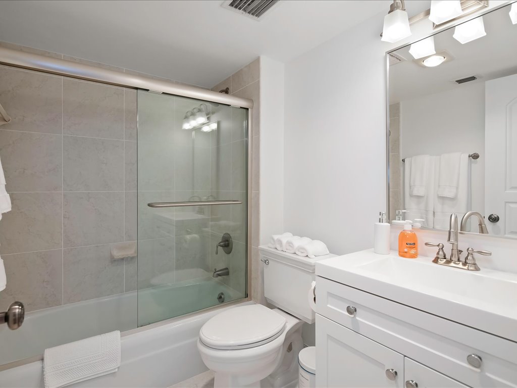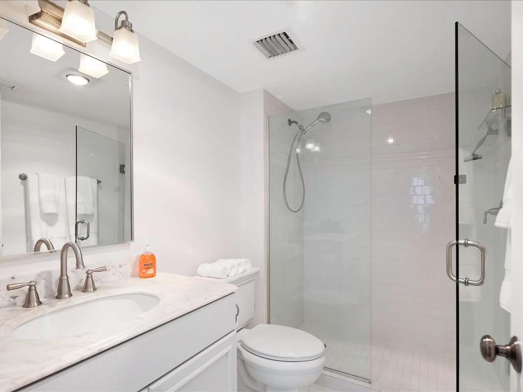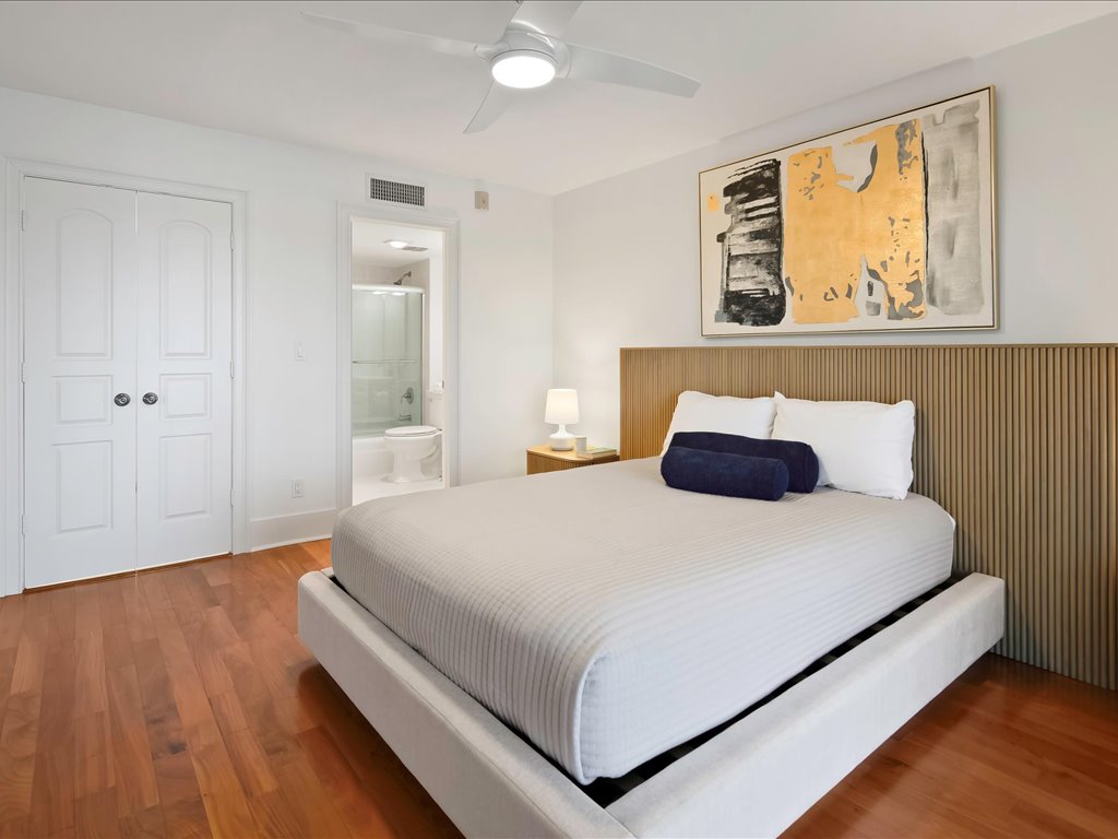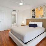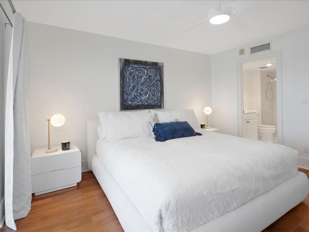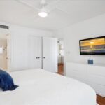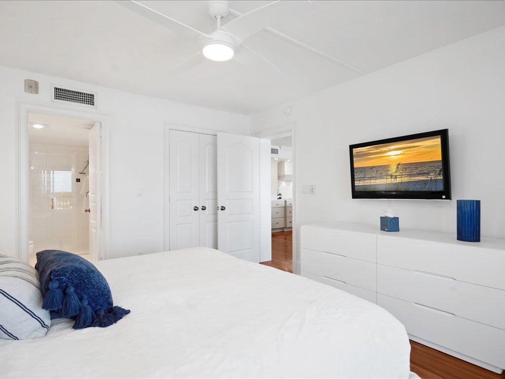 Die Hauptschlafzimmer-Suite verfügt über ein komfortables Kingsize-Bett mit neuer, firmer Matratze, einen Fernseher, ein eigenes Badezimmer und einen geräumigen begehbaren Kleiderschrank. Die Gäste-Suite bietet ein Queensize-Bett mit weicherer Matratze, ein eigenes Badezimmer, einen begehbaren Kleiderschrank und einen separaten Waschraum mit Waschmaschine und Trockner.
