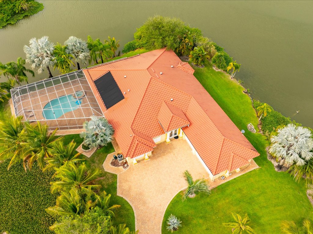 Ufer-Oase in Bonita Springs - Seeschlösschen auf 1 Hektar: Eine einmalige Gelegenheit in Bell Villa in Bonita Springs! Eingebettet auf einer kleinen Halbinsel, ist dieses individuell gestaltete Haus von drei Seiten von Wasser umgeben und bietet einen wunderschönen Blick auf den See sowie atemberaubende Sonnenuntergänge über dem größten See von Bell Villa.